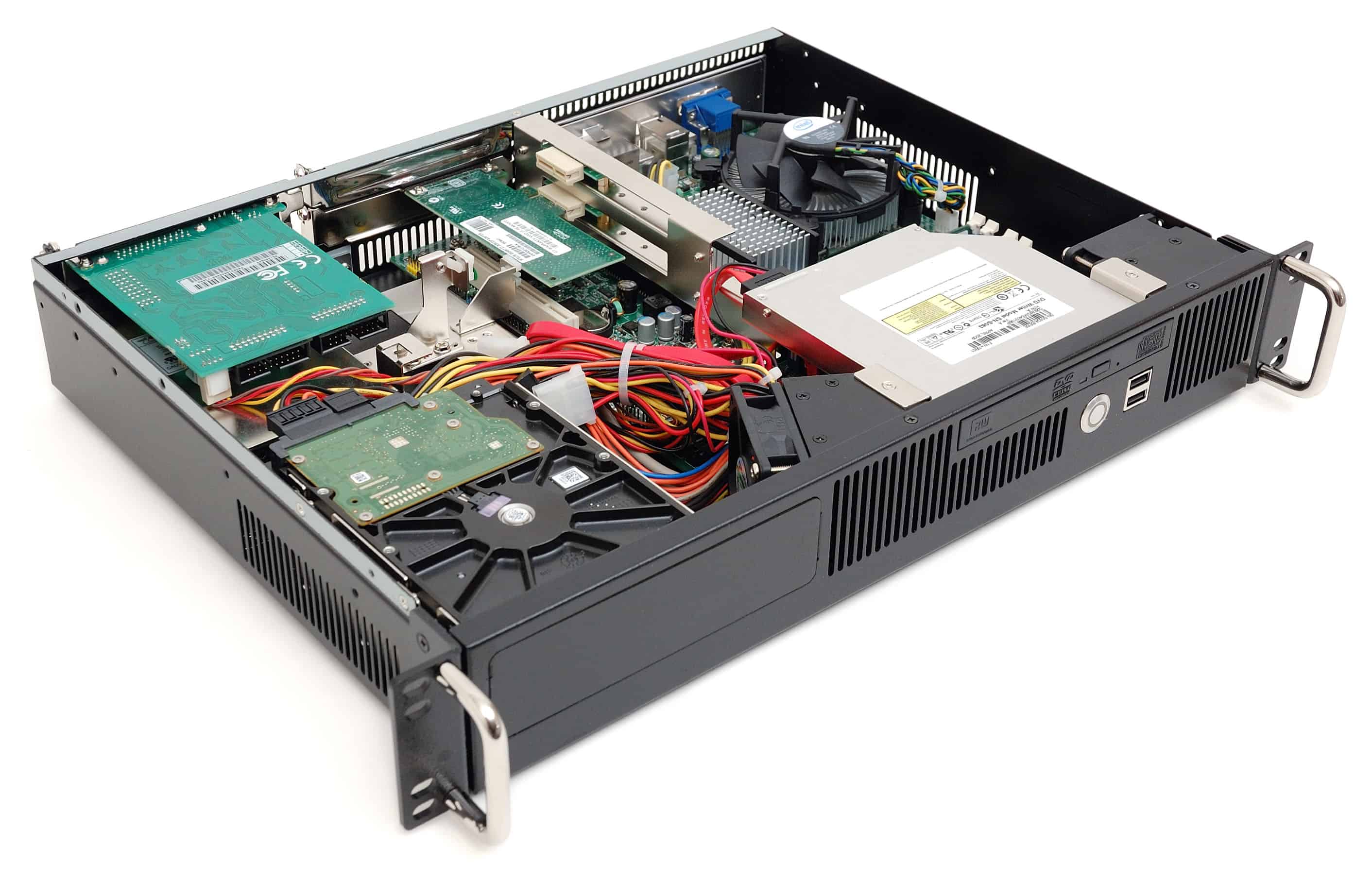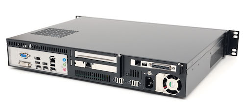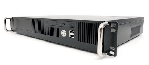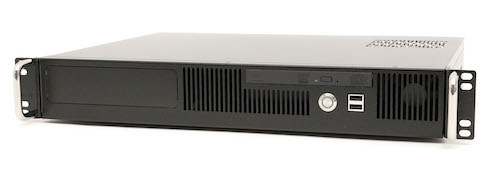 Though only 1.5U high (2.63″), this chassis supports a microATX system board, and up to three full-height cards. A modular card extender system lets you choose any combination of PCI-32 or PCI Express x1 through x16 cards. It has plenty of room for storage with two 3.5″ hard drive bays, as well as up to three 2.5″ hard drive bays. The system is cooled with two quiet 60mm fans directing airflow towards the critical system components. Exhaust and inlet vents maintain a flow of cool air over and through the hard drives, CPU, and memory. This quiet and efficient cooling keeps noise to a minimum, enabling your media applications to run both quickly and quietly.