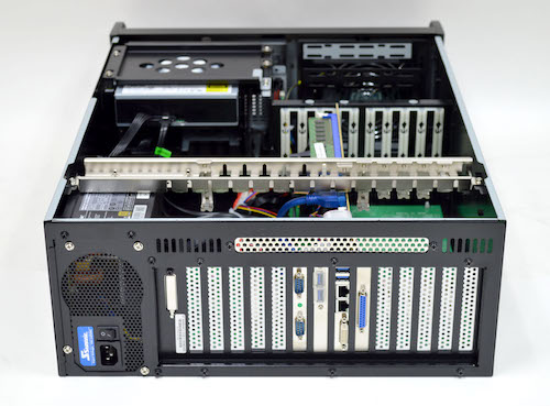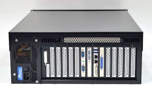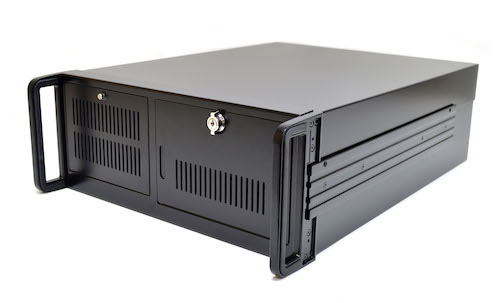Our industrial 4U ATX chassis will support a 14-slot backplane. There are three 5.25″ drive bays, one 3.5″ bay, and three internal 3.5″ bays, all mounted on a floating shock-mounted frame, with a locking drive cover. A 12cm cooling fan is built-in with a removable filter. An adjustable expansion card clamp is built into this sturdy case to keep adapter cards in place under shock and vibration. Choose any PS/2-style power supply.